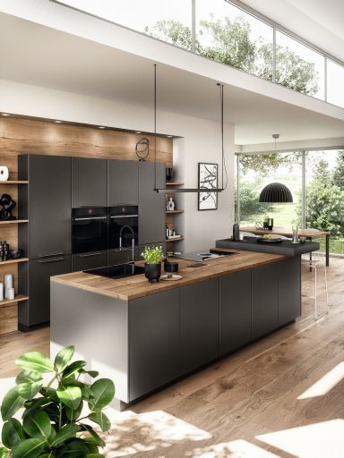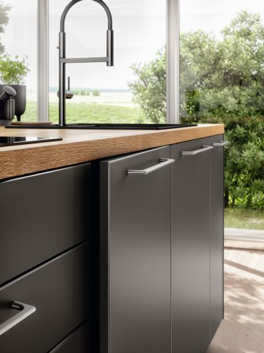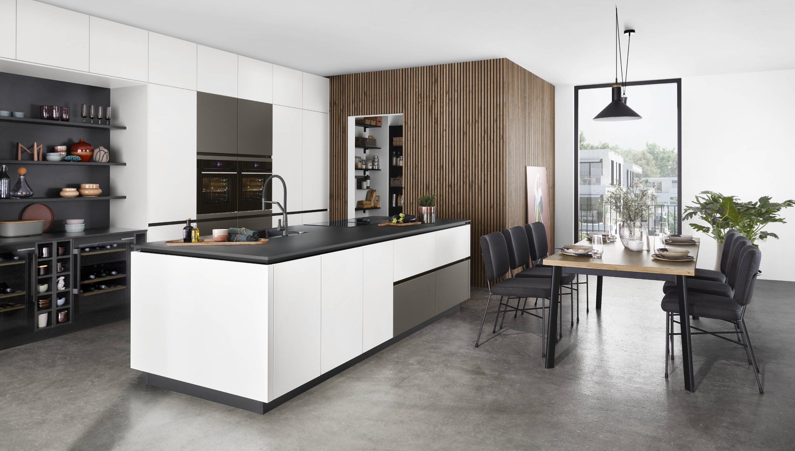 Frentes exclusivos en acabado de cristal también se ofrecen ahora en color blanco alpino y Titanio mate, un look fuera de serie con un atractivo efecto de profundidad, aportando el material un gran contraste junto con todos los demás.