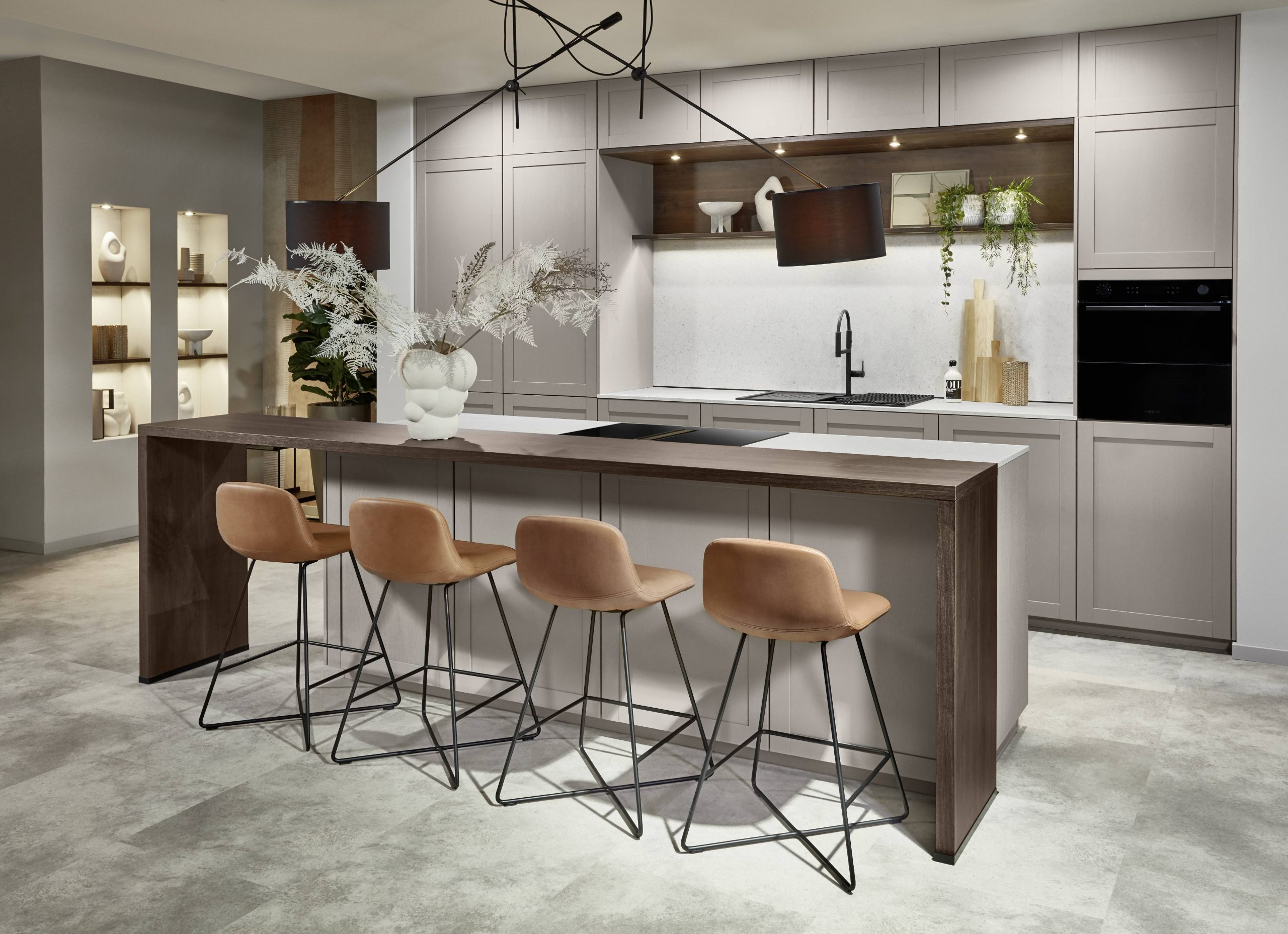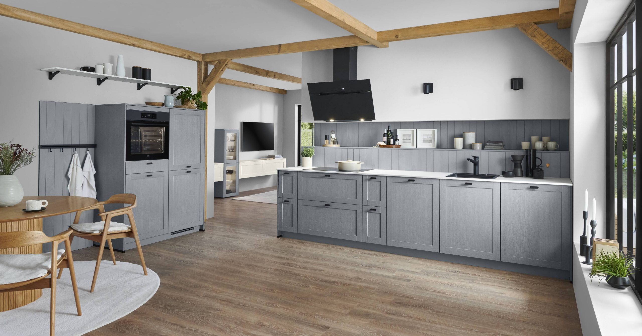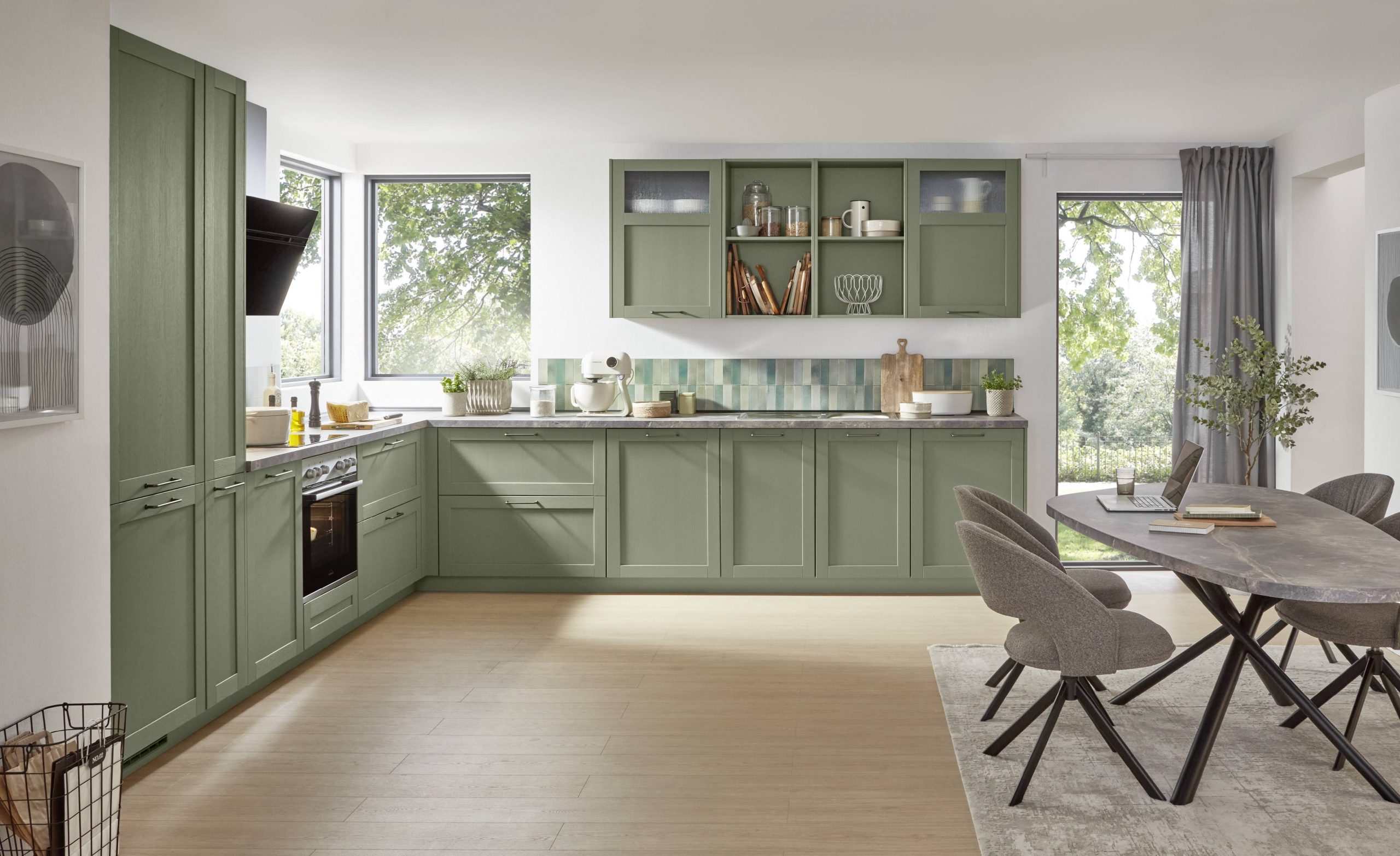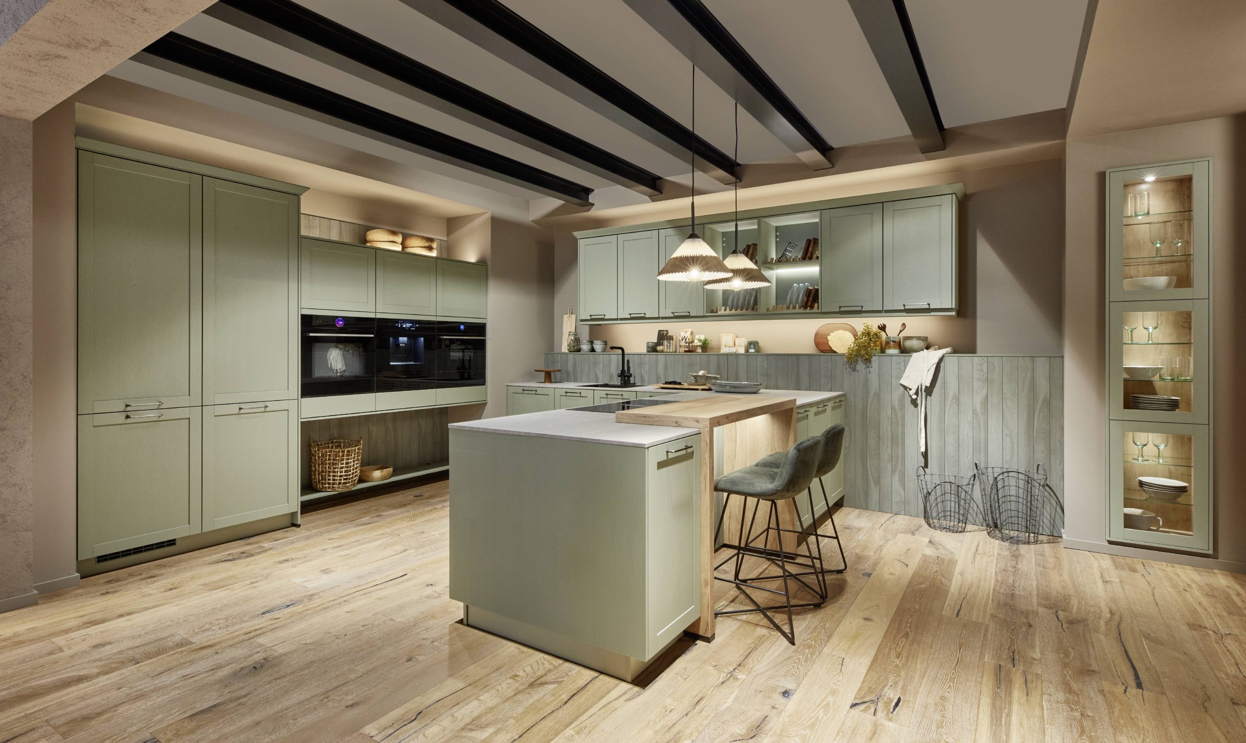 Gracias a sus estructura enmarcada laminada lacada a poro abierto, da un aspecto de Roble auténtico, diversidad en tonos RAL. combinables con variedad de formas en vitrinas y tiradores que aportan ese toque clásico que merece.